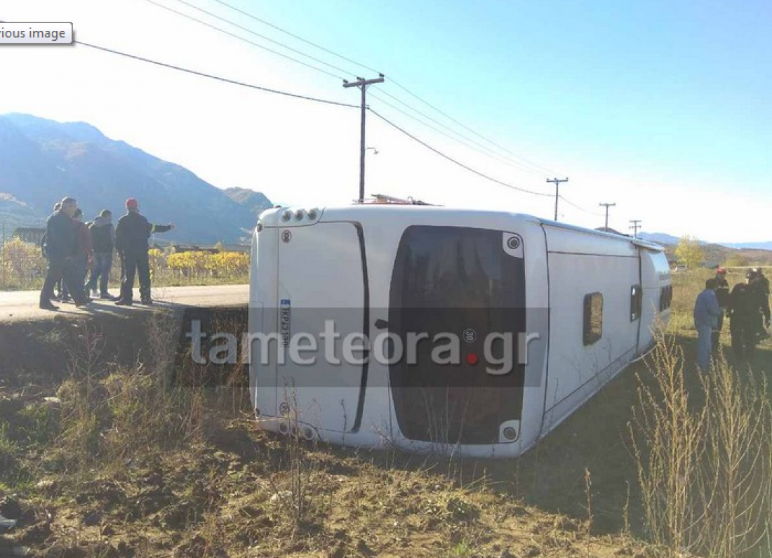 Τρίκαλα: Ανατροπή λεωφορείου με μαθητές