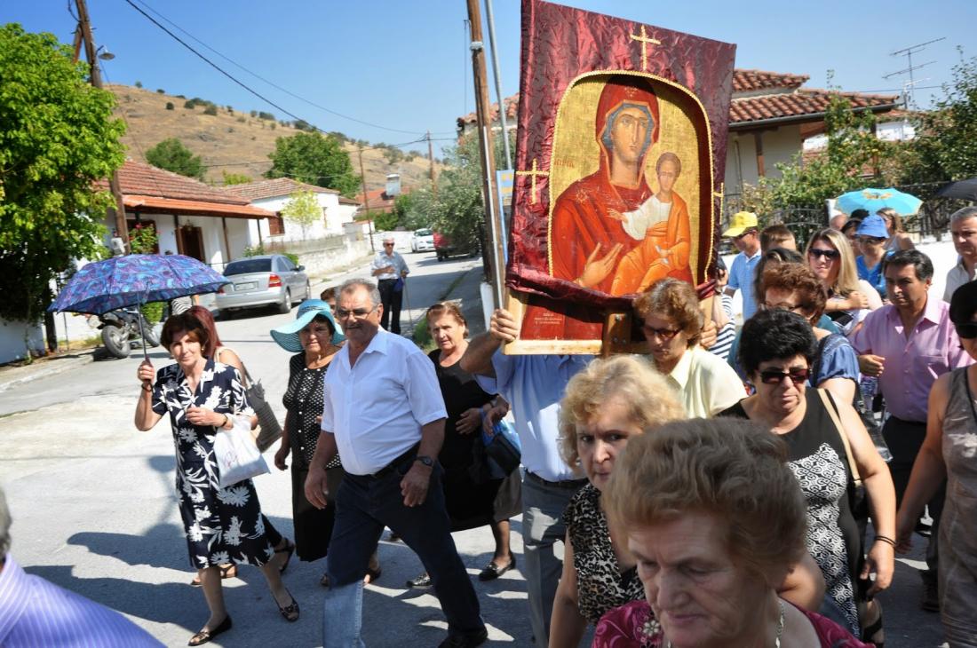 Με θρησκευτική ευλάβεια και παρά τις άσχημες καιρικές συνθήκες, με κύριο χαρακτηριστικό την ισχυρή βροχόπτωση, μεταφέρθηκε και φέτος από την Οιχαλία του Δήμου Φαρκαδόνας του νομού Τρικάλων, στο Αχλαδοχώρι του ίδιου Δήμου, η εικόνα της Παναγίας της Οδηγήτριας.