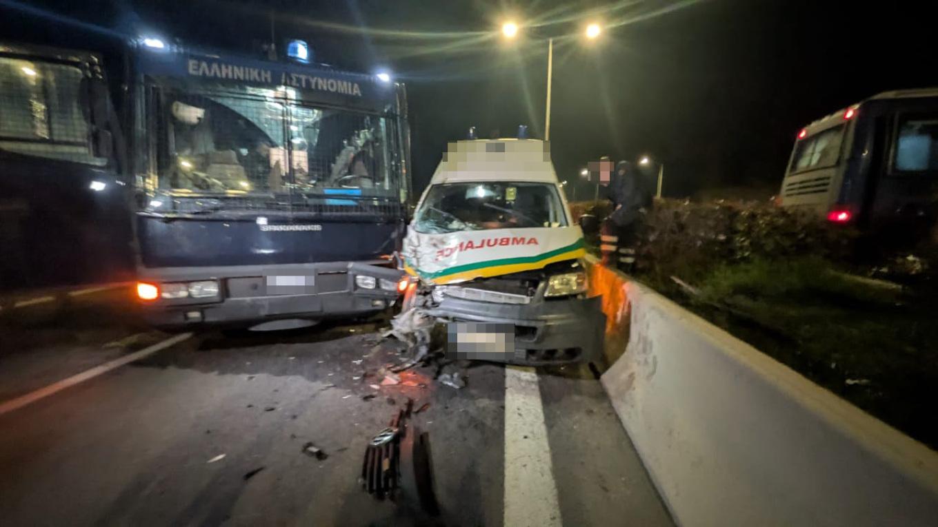 Τροχαίο με ασθενοφόρο στον Πλατύκαμπο Λάρισας: Πρόσκρουση σε κλούβα των ΜΑΤ