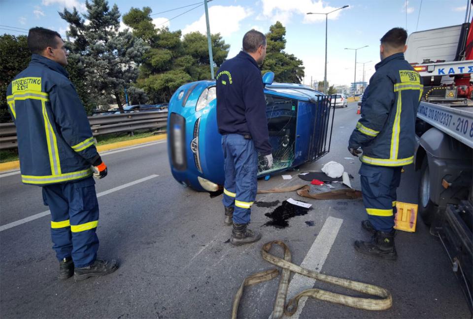 Σύμφωνα με τις πρώτες πληροφορίες ένα αυτοκίνητο αναποδογύρισε στη μέση του δρόμου.