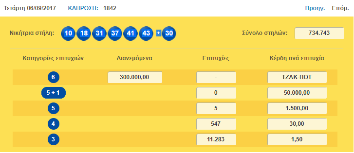 Οι νικητές της πρώτης κατηγορίας της κλήρωσης του θα μοιραστούν περισσότερα από 400.000 ευρώ!