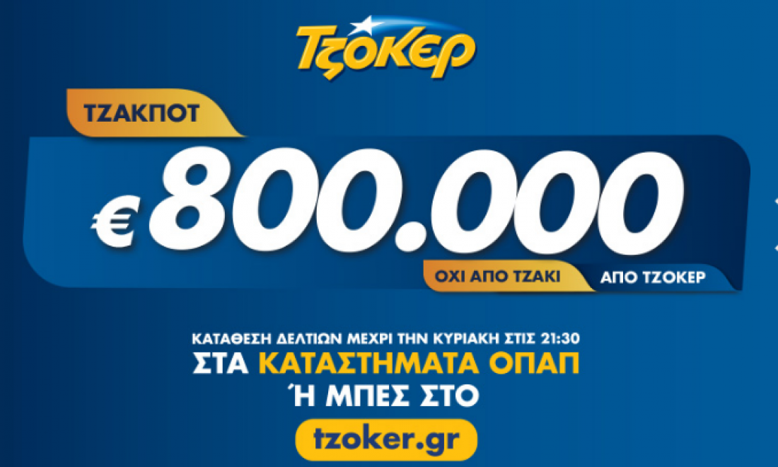 Τζακ ποτ σημειώθηκε στην σημερινή Κλήρωση 2068 του Τζόκερ της Πέμπτης 7 Νοεμβρίου 2019. Έτσι, στην επόμενη κλήρωση 2069, του Τζόκερ του ΟΠΑΠ , της Κυριακής 10 Νοεμβρίου 2019, οι τυχεροί θα μοιραστούν τουλάχιστον 800.000 ευρώ.
