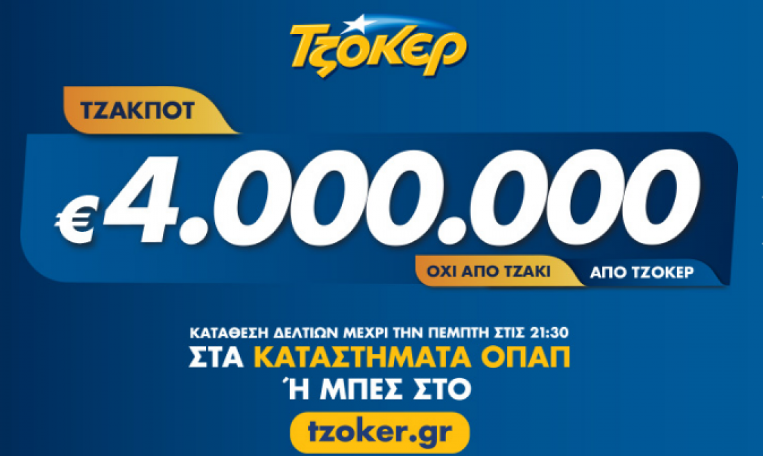 Τζακ ποτ σημειώθηκε στην αποψινή κλήρωση 2073 το Τζόκερ του ΟΠΑΠ . Μετά το νέο τζακ ποτ στο τζόκερ στην επόμενη κλήρωση 2074, της Πέμπτης 28 Νοεμβρίου 2019, οι τυχεροί της πρώτης κατηγορίας θα μοιραστούν το ποσό των 4.000.000 ευρώ