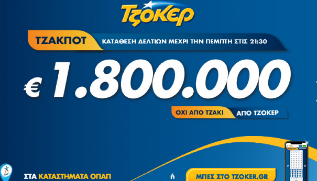 Τζακ ποτ στο τζόκερ, στην κλήρωση 2102, της Πέμπτης 5/3/2020: Τουλάχιστον 1.800.000 ευρώ θα μοιραστούν οι τυχεροί στην επόμενη κλήρωση
