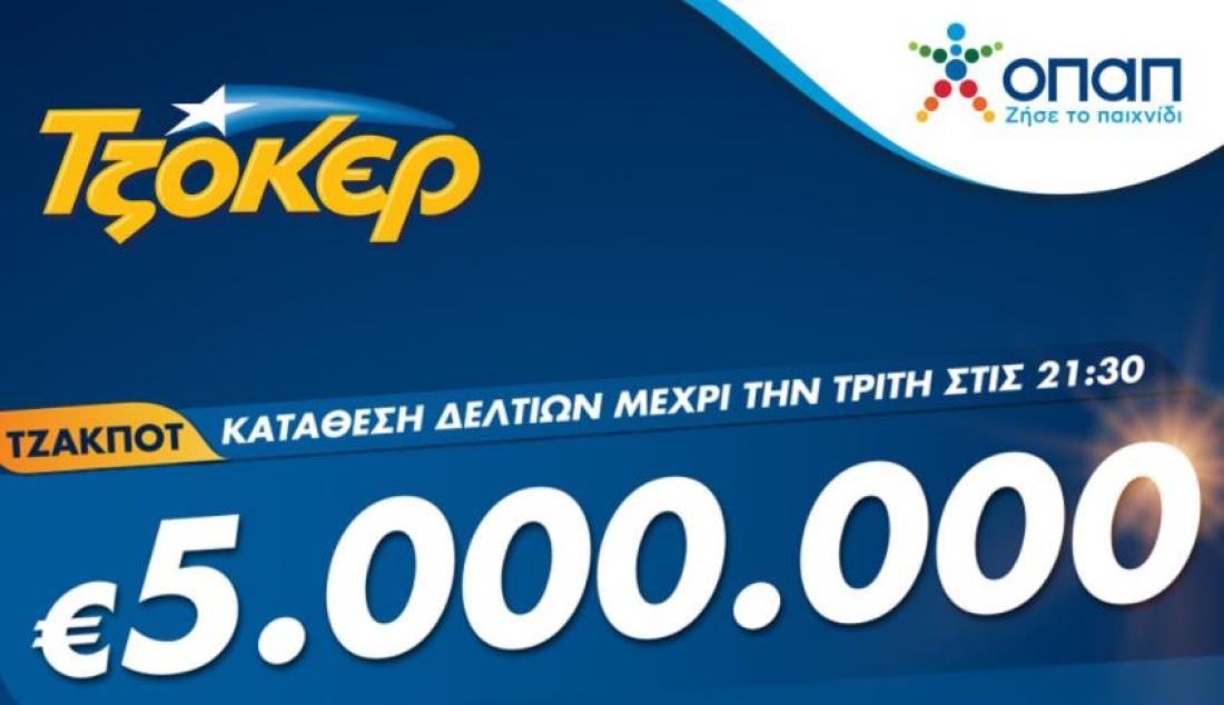 Η αποψινή κλήρωση του ΤΖΟΚΕΡ για τα 5 εκατομμύρια ευρώ θα πραγματοποιηθεί στις 22:00, όπως όλες οι εβδομαδιαίες κληρώσεις του παιχνιδιού κάθε Τρίτη, Πέμπτη και Κυριακή. Οι παίκτες μπορούν να την παρακολουθήσουν ζωντανά στο κανάλι του ΟΠΑΠ στο , στο ή στο ΤΖΟΚΕΡ app.