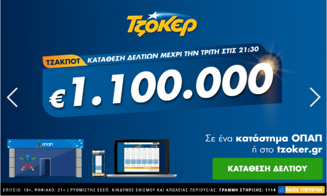 Η on line κατάθεση δελτίων, ολοκληρώνεται στις 21:30.