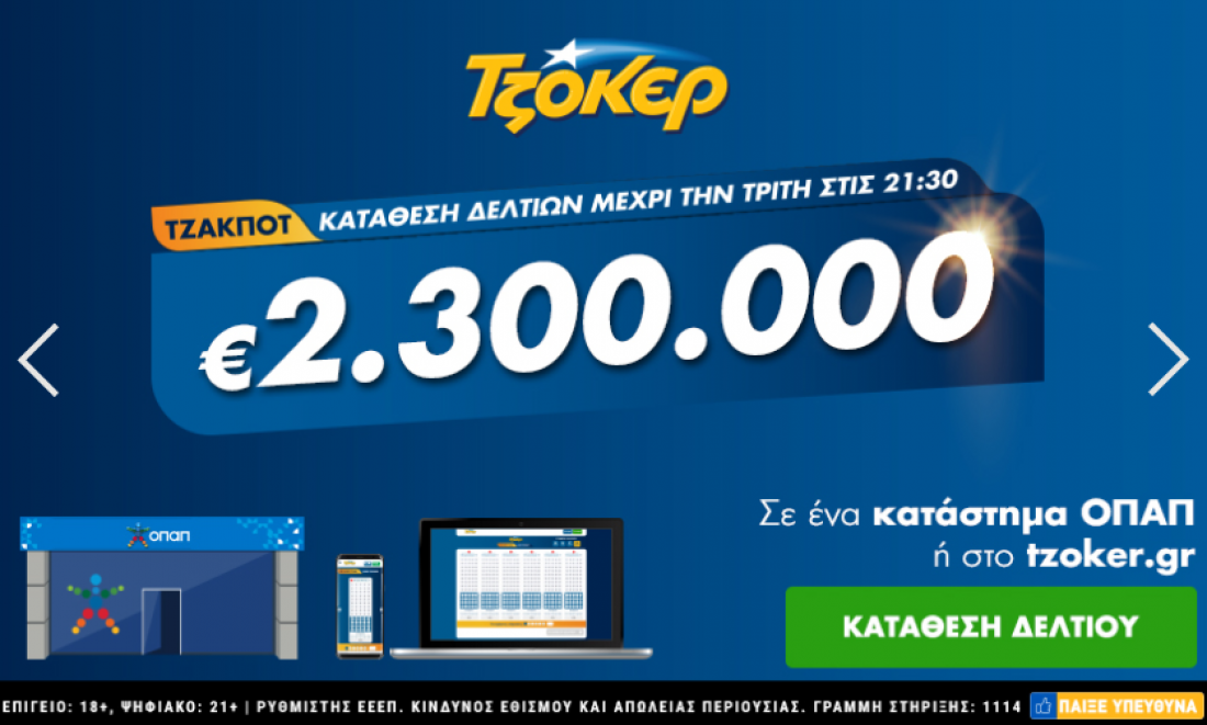 Η on line κατάθεση δελτίων, ολοκληρώνεται στις 21:30.