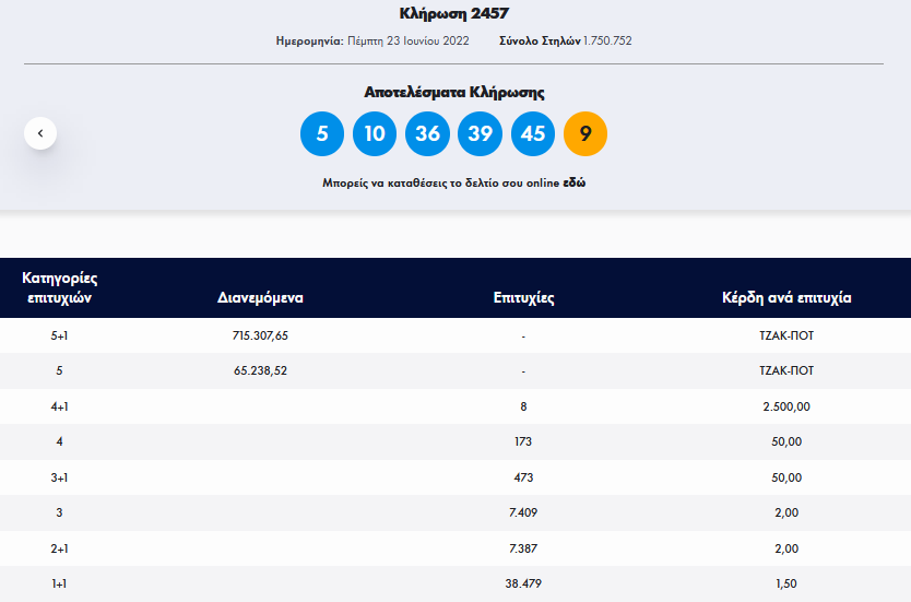 Τζόκερ - Κλήρωση 2219 - Πέμπτη 23/6/2022: Αυτοί είναι οι τυχεροί αριθμοί