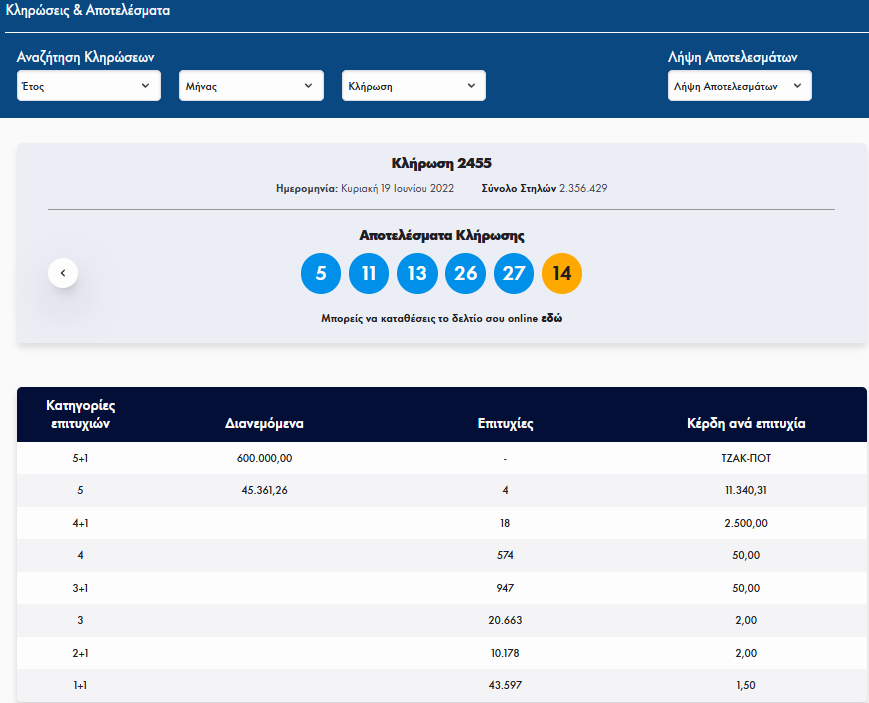 Τζόκερ-Κλήρωση 2455-Κυριακή 19/6/2022: Αυτοί είναι οι τυχεροί αριθμοί