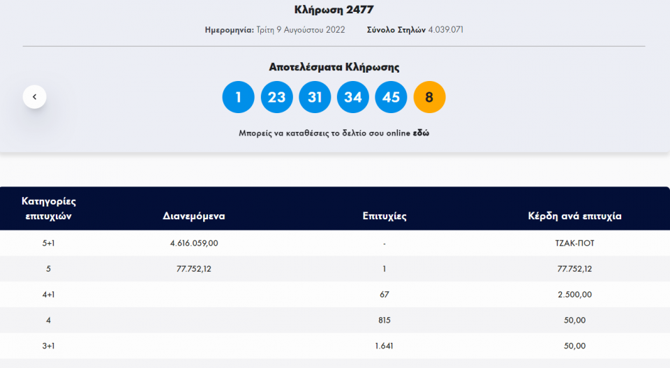 Τζόκερ-Κλήρωση 2477-Τρίτη 9/8/2022: Αυτοί είναι οι τυχεροί αριθμοί