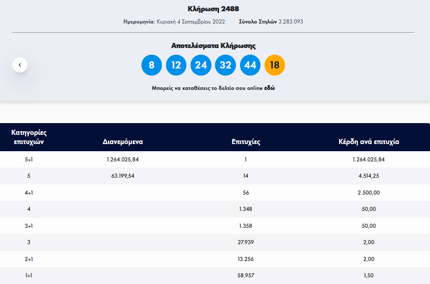 Τζόκερ-Κλήρωση 2488-Κυριακή 4/9/2022: Αυτοί είναι οι τυχεροί αριθμοί