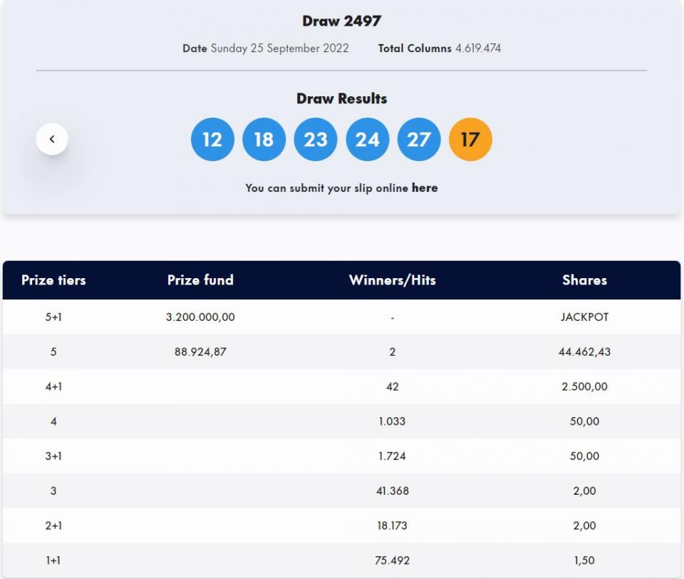 Οι τυχεροί αριθμοί της κλήρωσης 2497 είναι: