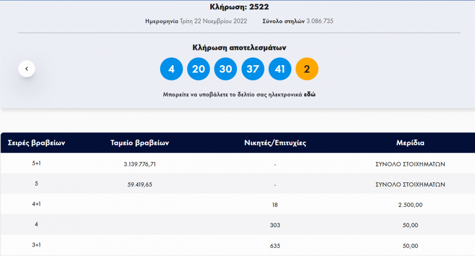 Τζόκερ-Κλήρωση 2522-Τρίτη 22/11/2022: Αυτοί είναι οι τυχεροί αριθμοί