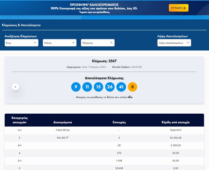 Τζόκερ - Κλήρωση 2567 – Τρίτη 7/03/2023