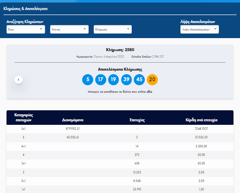 Τζόκερ - Κλήρωση 2580 – – Πέμπτη 6 /04/2023