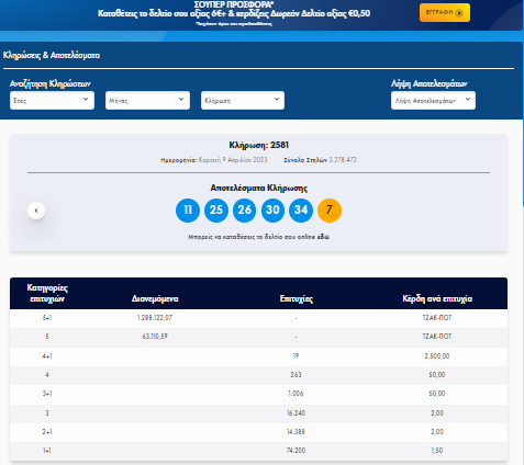 Τζόκερ - Κλήρωση 2581 – Κυριακή 9/04/2023