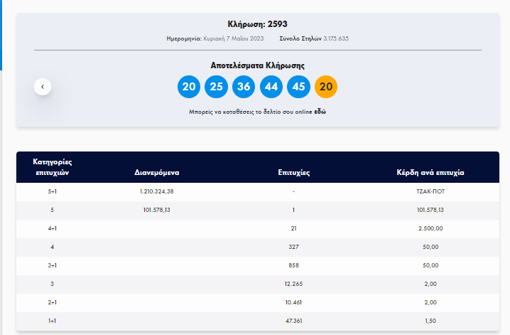 Τζόκερ - Κλήρωση 2593– Κυριακή 7/05/2023: Αυτοί είναι οι τυχεροί αριθμοί