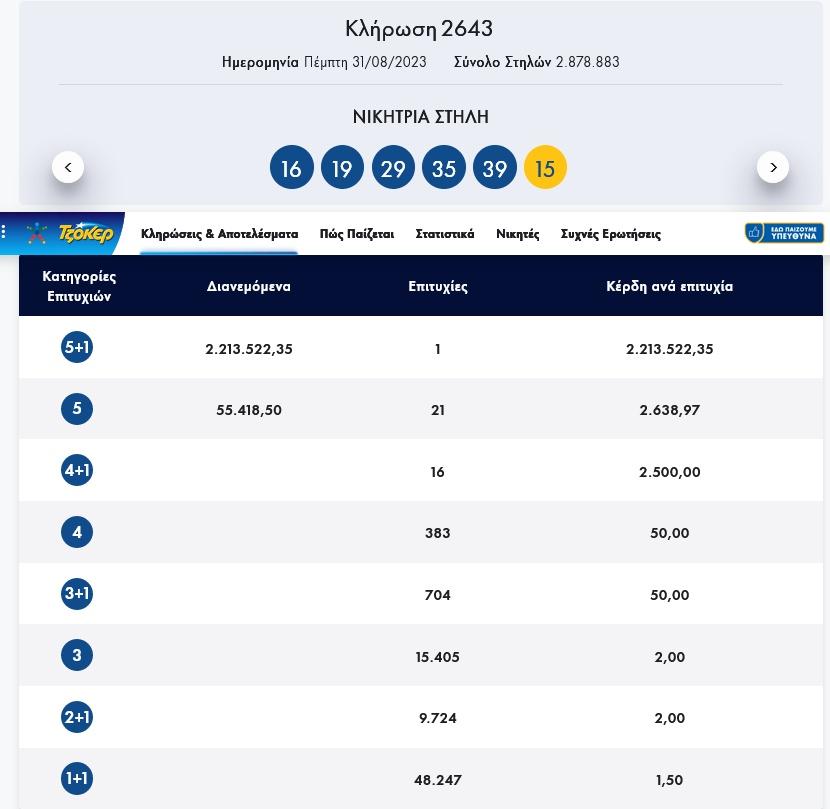 Τζόκερ - Κλήρωση 2643 - Πέμπτη 31/8/2023: