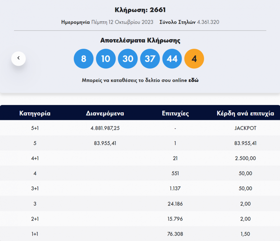 Τζόκερ - Κλήρωση 2661 - Πέμπτη 12/10/2023: Δείτε τους τυχερούς αριθμούς