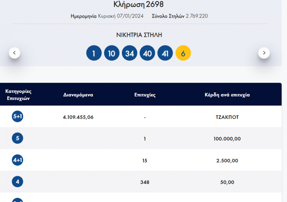 Τζόκερ: Κλήρωση 2698 - Κυριακή 7/1/2024