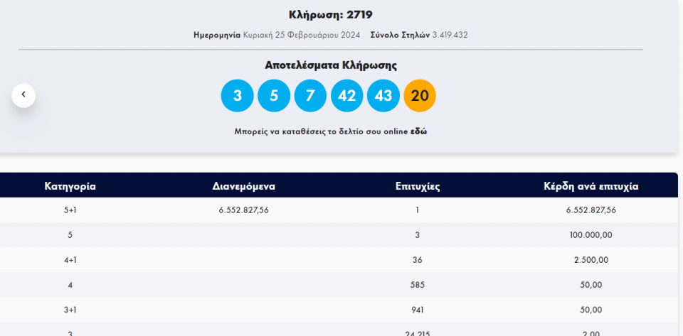 Τζόκερ - Κλήρωση 2719 - Κυριακή 25/2/2024: Ένας νικητής κέρδισε 6,5 εκατ. ευρώ -  Δείτε τους τυχερούς αριθμούς