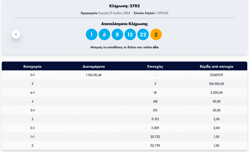 Tζόκερ: Κλήρωση 2782 - Κυριακή 21/7/2024