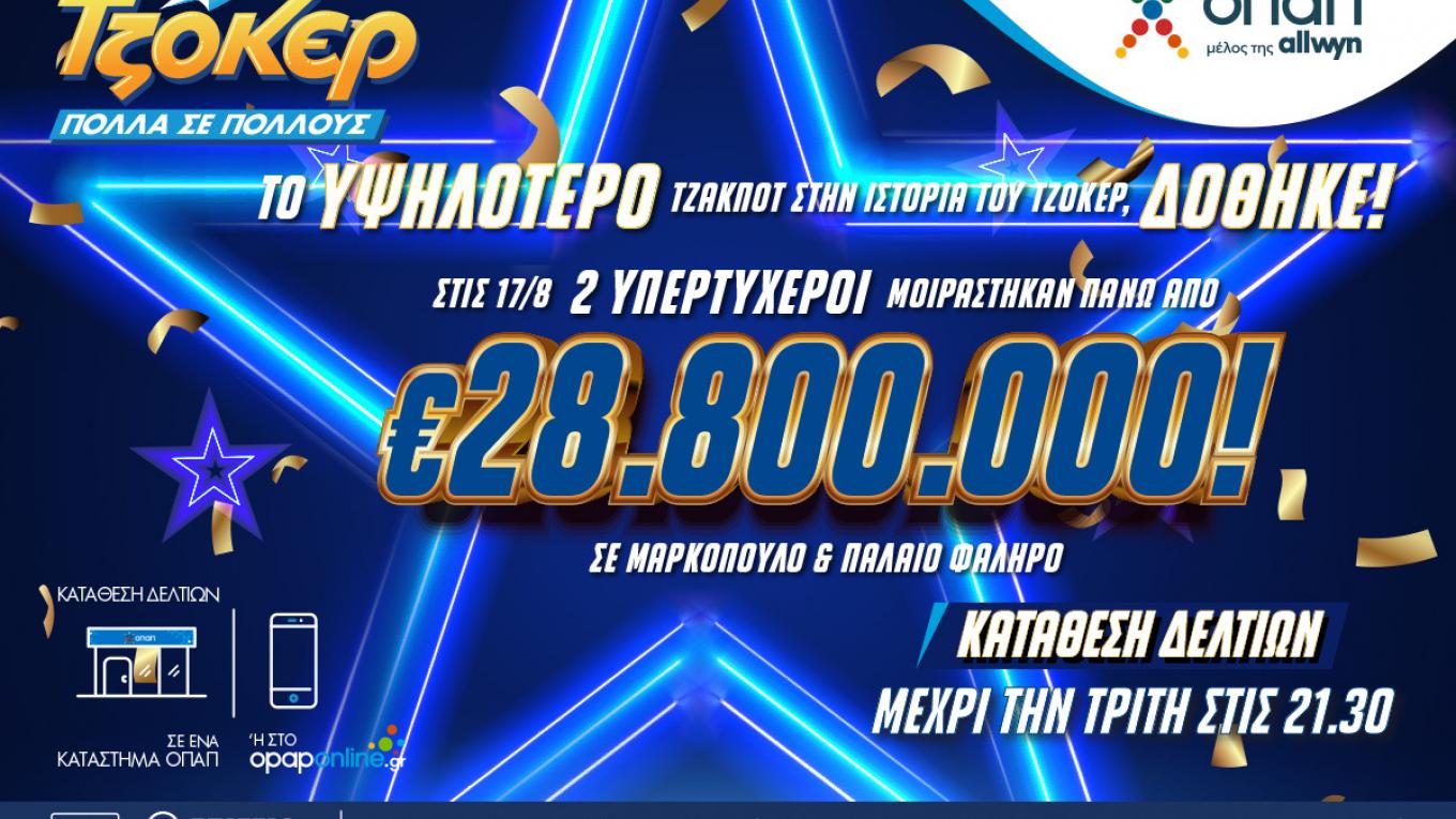 Εκτός από τους 2 μεγάλους νικητές, όμως, η Κυριακάτικη κλήρωση του ΤΖΟΚΕΡ ανέδειξε συνολικά 9 επιτυχίες και στη δεύτερη κατηγορία, με την κάθε μία να κερδίζει από 100.000 ευρώ.