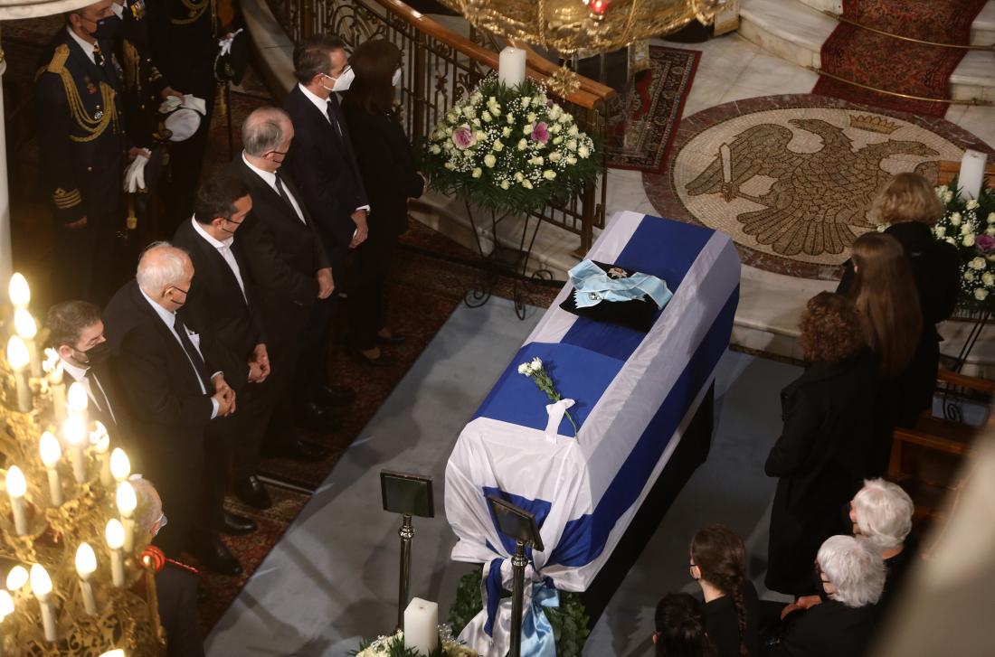 Λίγο πριν τις 12:30 η σορός του πρώην Προέδρου της Δημοκρατίας έφτασε στον ιερό ναό. Το φέρετρό του ήταν καλυμμένο με την ελληνική σημαία.