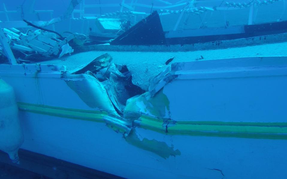 Σήμερα η «Κ» παρουσιάζει για πρώτη φορά οπτικό υλικό από το βυθισμένο σκαρί του «Αντωνία». Στις εικόνες, που βρίσκονται στη διάθεση των Αρχών, φαίνονται καθαρά τα σημάδια της σύγκρουσης.