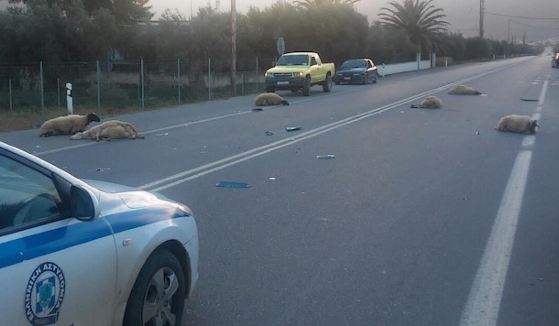 Περιπολικό της Αστυνομίας έφτασε στο σημείο για να ρυθμίσει την κυκλοφορία, ενώ λίγη ώρα αργότερα τα πρόβατα απομακρύνθηκαν από το σημείο.