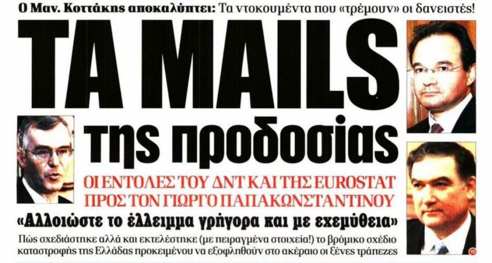 Στο ρεπορτάζ της Τετάρτης 31 Αυγούστου η εφημερίδα Δημοκρατία έριξε φως στο θρίλερ με τα απόρρητα mails της ΕΛΣΤΑΤ και της Eurostat,με τα οποία συνεργάτες του προέδρου της Ευρωπαϊκής στατιστικής υπηρεσίας Γερμανού Ραντεμάχερ έδιναν απευθείας εντολές στον πρόεδρο της Ελληνικής στατιστικής υπηρεσίας, Ανδρέα Γεωργίου, για τις μεθόδους που θα χρησιμοποιούσε για να αλλοιώσει το έλλειμμα.
