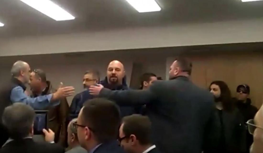 Οι υπόδικοι βουλευτές, κατόπιν μπήκαν στο κτίριο μαζί με άλλα 50 μέλη της Χρυσής Αυγής, ανέβηκαν στον 3ο όροφο όπου διεξαγόταν η συζήτηση και αφού φώναξαν υβριστικά και ρατσιστικά συνθήματα όπως «Αλήτες, ρουφιάνο, δημοσιογράφοι» και «Έξω οι τούρκοι από την Ελλάδα», αποχώρησαν με στρατιωτικό παράγγελμα απαγγέλοντας τον εθνικό ύμνο.