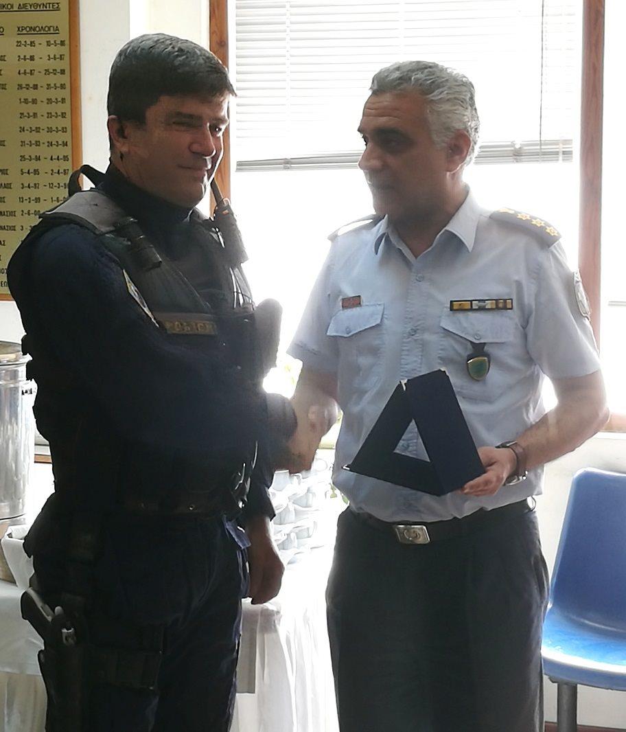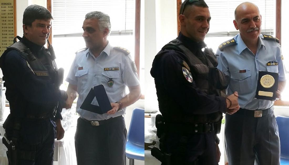 Σε ειδική τελετή που πραγματοποιήθηκε σήμερα το πρωί, στη Διεύθυνση Αστυνομίας Μεσσηνίας, βραβεύτηκαν από τον Διευθυντή Αστυνομίας Μεσσηνίας Αστυνομικό Διευθυντή Παναγιώτη Πούπουζα και τον Αστυνομικό Διευθυντή Ηλία Αξιοτόπουλο, δύο αστυνομικοί, που υπηρετούν στην Ομάδα Δίκυκλης Αστυνόμευσης (ΔΙ.ΑΣ.) Μεσσηνίας, για εξαιρετικές πράξεις.
