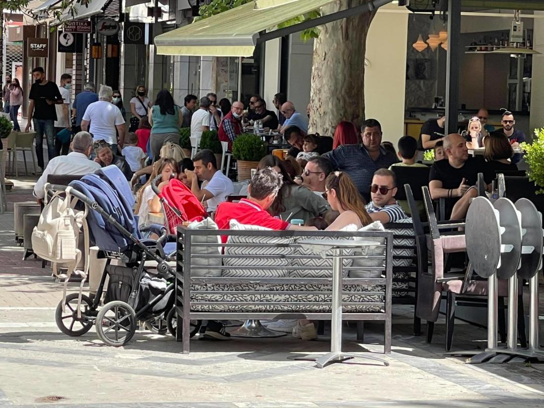 Στα καταστήματα εστίασης μαζικά προσέρχονται οι κάτοικοι της Λάρισας σήμερα, πρώτη μέρα της "επανεκκίνησης" της λειτουργίας των καταστημάτων. Αρκετοί απολαμβάνουν τον καφέ τους στις καφετέριες, ενώ άλλοι επιλέγουν τα τσιπουράδικα - ουζερί για το μεσημέρι.