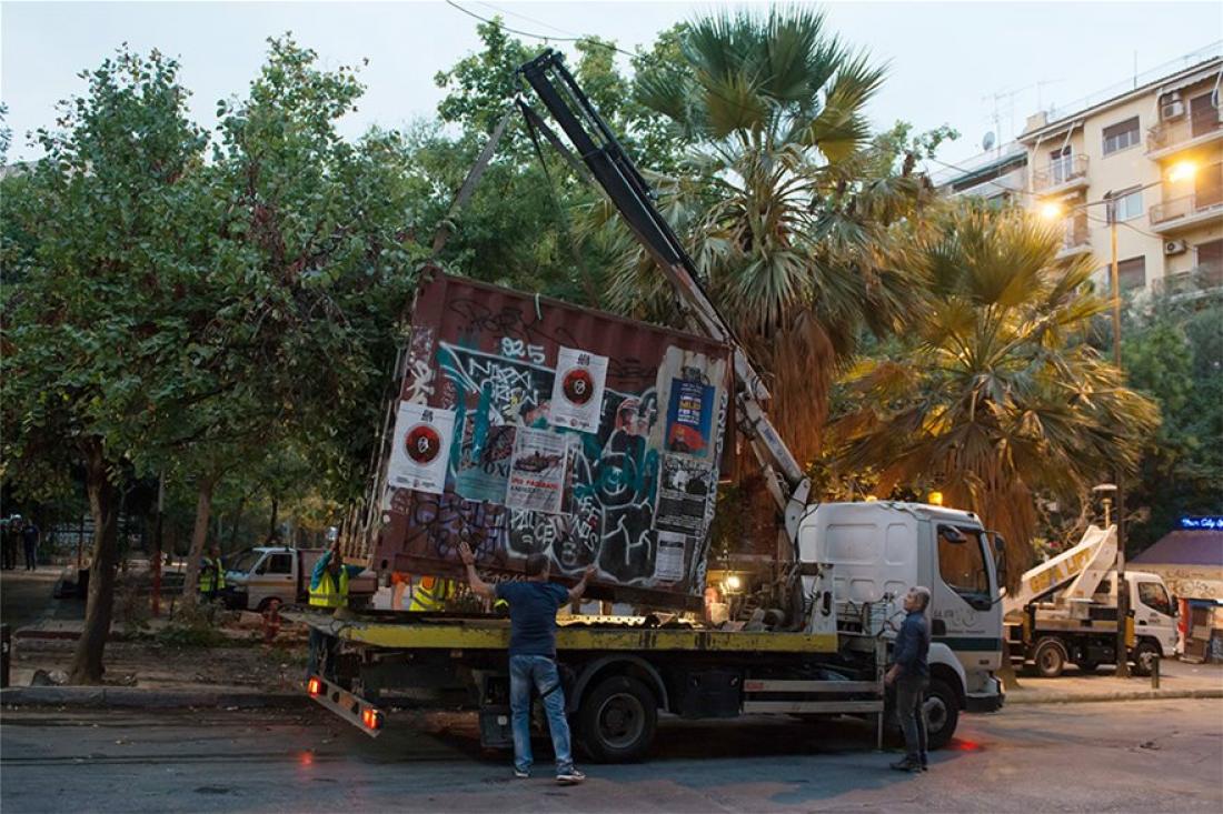 Στην απομάκρυνση κοντέινερ από την πλατεία των Εξαρχείων το οποίο τοποθετήθηκε από αναρχικούς το 2017 προκειμένου να αποτελέσει «πολιτικό περίπτερο», προέβησαν το πρωί της Παρασκευής ο Δήμος Αθηναίων και η ΕΛ.ΑΣ., σε συντονισμένη επιχείρηση.