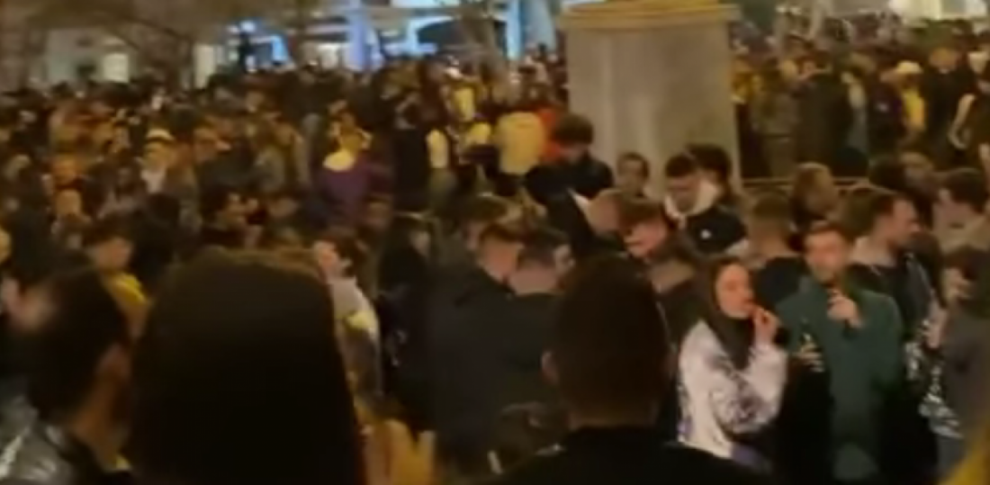 Το πάρτι με DJ συγκέντρωσε πλήθος κόσμου που με ποτά στα χέρια και αψηφώντας τα μέτρα προστασίας συγκεντρώθηκαν στην πλατεία.