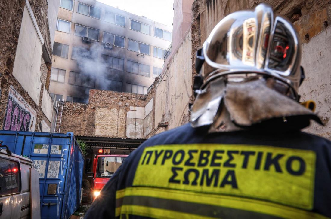 Υπό μερικό έλεγχο η πυρκαγιά σε κτίριο στο Μοναστηράκι (ΦΩΤΟ)