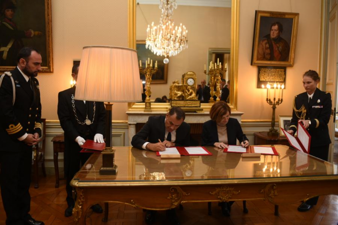 Ο υπουργός Εθνικής Άμυνας Νίκος Παναγιωτόπουλος υπέγραψε στο Παρίσι δήλωση πρόθεσης ανάμεσα στις δύο χώρες ώστε να προχωρήσει η διαδικασία προμήθειας των δυο που θα ενισχύσουν το Πολεμικό μας Ναυτικό την ώρα που η απειλεί και προκαλεί σε Αιγαίο και Ανατολική Μεσόγειο.