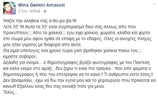 Μία ακόμα ανάρτηση-ξέσπασμα έκανε η Μίνα Αρναούτη, έκανε πριν λίγο με αφορμή τα δημοσιεύματα...