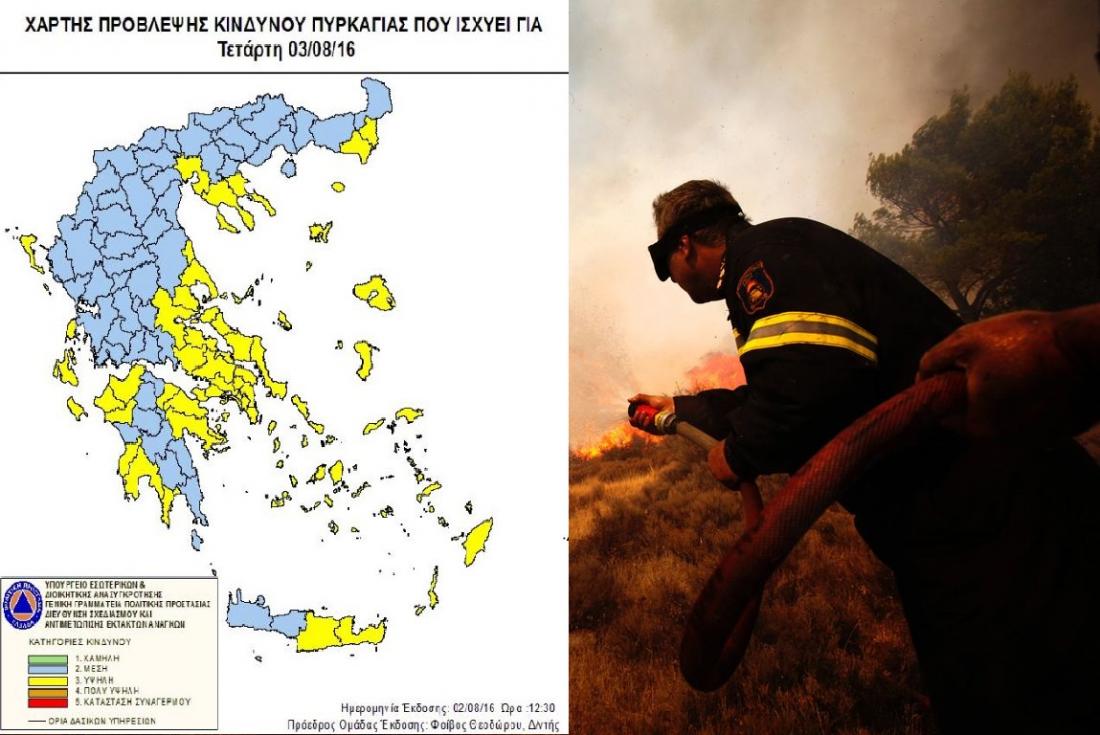 Υψηλός ο κίνδυνος πυρκαγιάς για την Τετάρτη σύμφωνα με τον χάρτη επικινδυνότητας