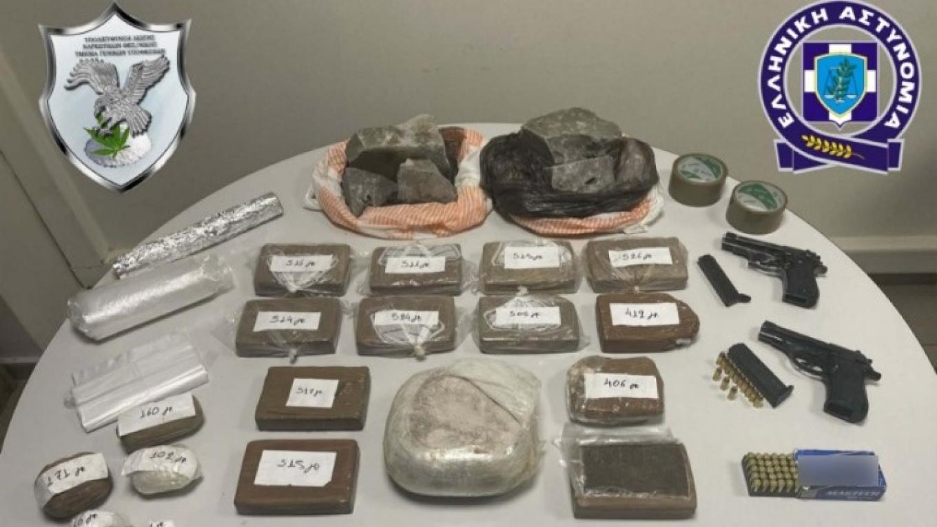 Στη συγκεκριμένη αστυνομική επιχείρηση, πραγματοποιήθηκαν έρευνες σε υπαίθριους χώρους και σε διαμερίσματα που χρησιμοποιούσαν σε περιοχές του Νομού Αττικής αλλά και σε δύο επιβατικά οχήματα που χρησιμοποιούσαν για τις μετακινήσεις τους και τη μεταφορά των ναρκωτικών, κατά τις οποίες βρέθηκαν και κατασχέθηκαν συνολικά σχεδόν 9 κιλά ηρωινής, μικροποσότητα κοκαΐνης, δενδρύλλια και ποσότητα κάνναβης, δύο πιστόλια, φυσίγγια κ.ά.