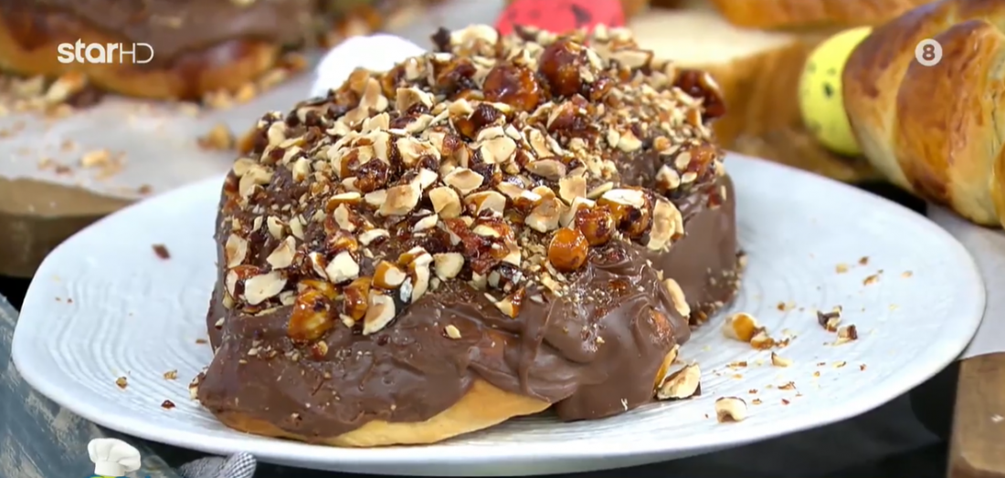 Συνταγή για αφράτα μαστιχωτά τσουρέκια με επικάλυψη σοκολάτας και φουντουκιού από τον Λάμπρο Βακιάρο.