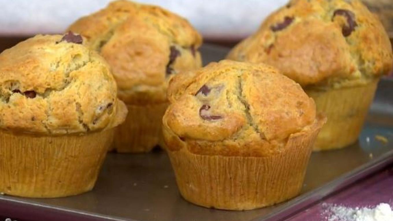 Υλικά: 3 αυγά, 1/2 φλιτζάνι γάλα, 1/2 φλιτζάνι ελαιόλαδο, 200γρ αλεύρι γοχ, 100γρ φέτα, 50 γρ ελιές μαύρες ψιλοκομμένες, 1 κγ μπεικινγκ, 1 κγ πιπέρι, 1 κγ ρίγανη.