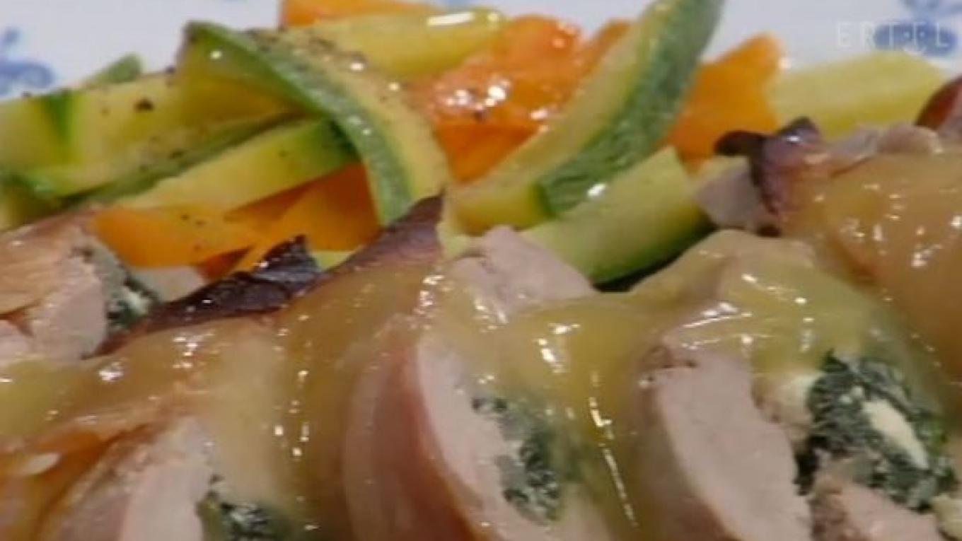 Δείτε αναλυτικά πώς θα φτιάξετε γεμιστό Ψαρονέφρι με σπανάκι και μανούρι με λαχανικά βουτύρου.