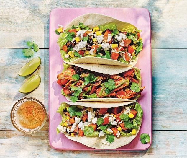 Τα τάκος της Βραζιλίας έχουν κοτόπουλο, χοιρινό κιμά, καυτερή σάλτσα φασολιών, τυρί και λαχανικά