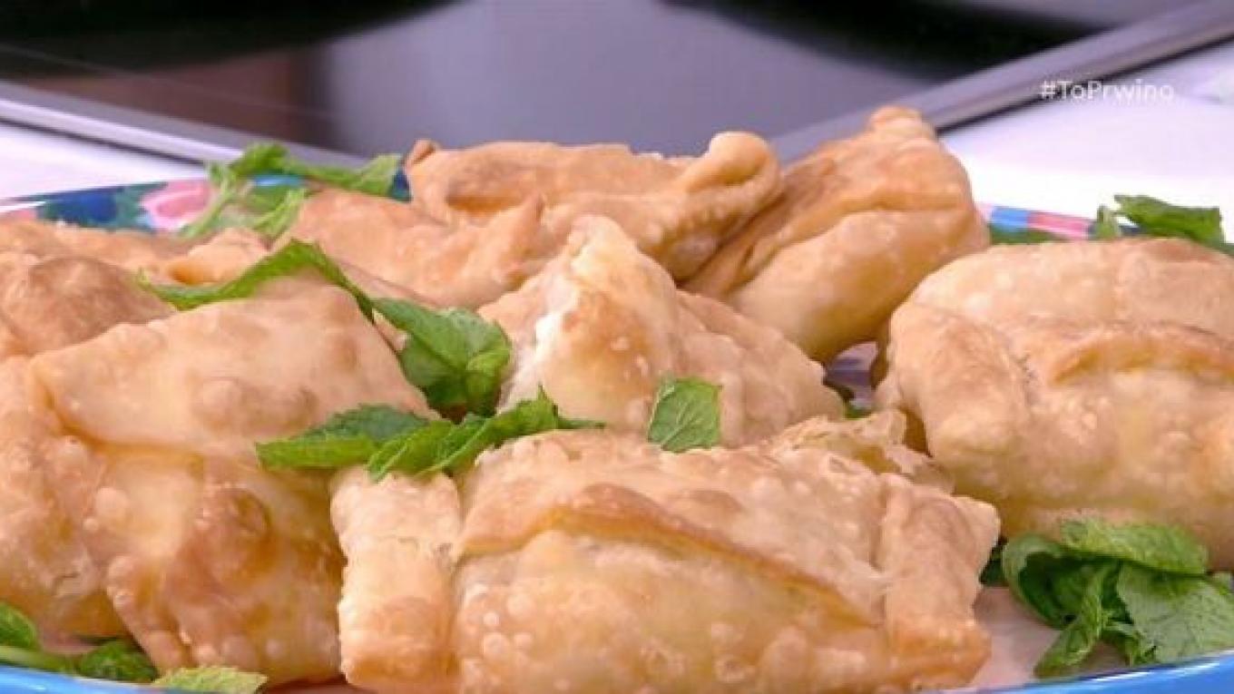 Η Αργυρώ Μπαρμπαρίγου ετοιμάζει γκιουζλεμέδες Λέσβου: τυροπιτάκια με τραγανό φύλλο.
