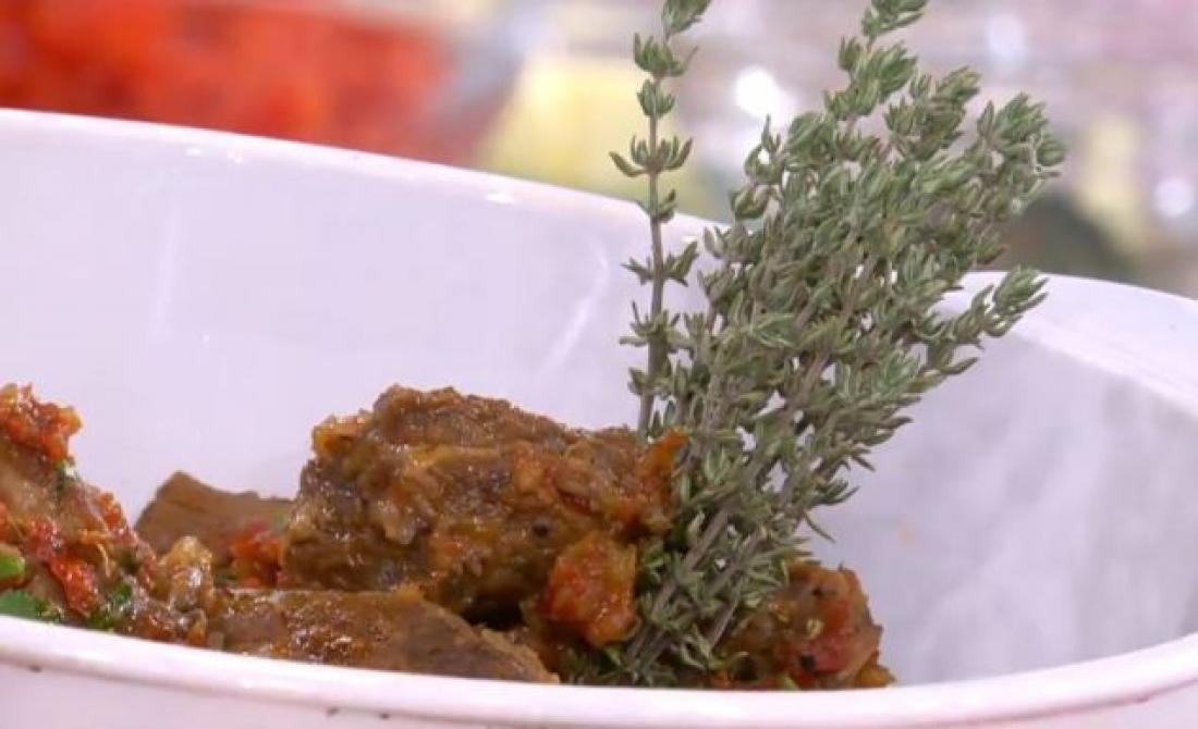 Η Κατερίνα Λένη μάς ετοιμάζει πεντανόστιμο χοιρινό κρασάτο, με στικς γλυκοπατάτας!