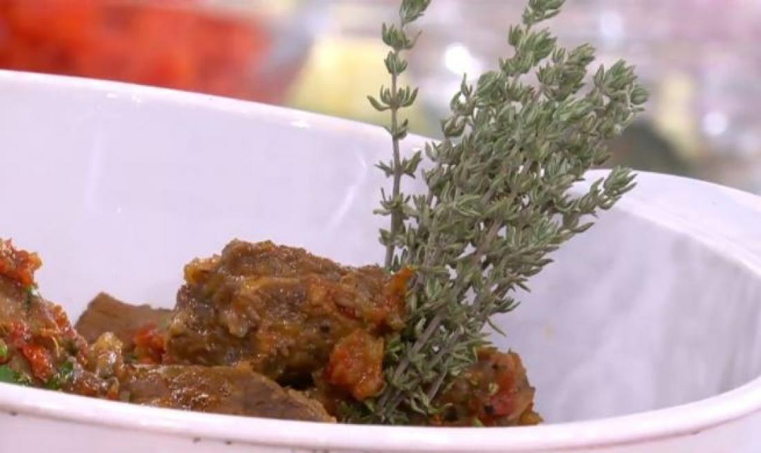 Η Κατερίνα Λένη μάς ετοιμάζει πεντανόστιμο χοιρινό κρασάτο, με στικς γλυκοπατάτας!