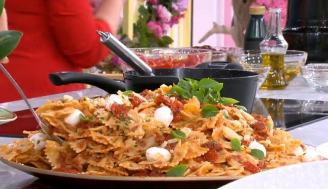 Η Κατερίνα Λένη μάς ετοιμάζει λαχταριστή ιταλική μακαρονάδα με μοτσαρέλα και λιαστές ντομάτες.