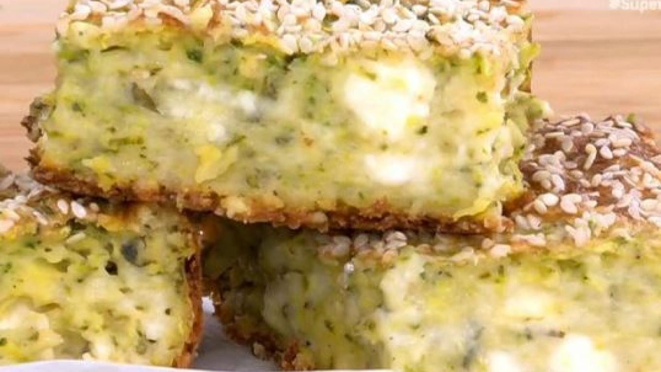 Για τη συνταγή θα χρειαστούμε: 3 μεγάλα κολοκυθάκια 3 αυγά 1 λεμόνι (μόνο ξύσμα) 150 γρ. αλεύρι γ.ο.χ. 15 γρ. baking powder 250 γρ. φέτα 1 ματσάκι βασιλικό ψιλοκομμένο 20 γρ. σουσάμι για πασπάλισμα Ελαιόλαδο για το ταψί Αλεύρι για το ταψί Αλάτι Πιπέρι